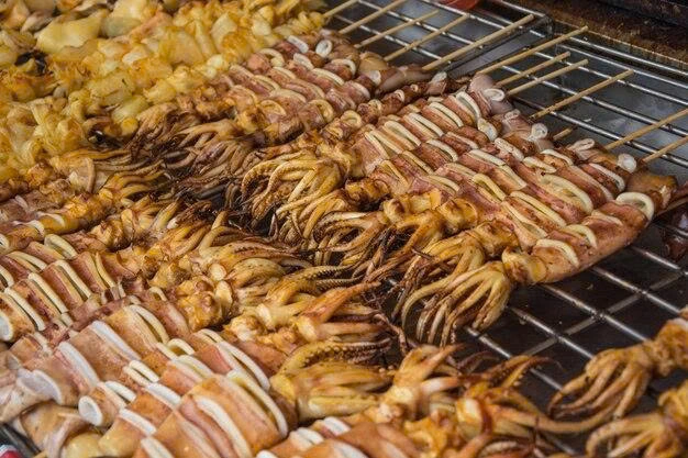 Calamar a la parrilla en la playa